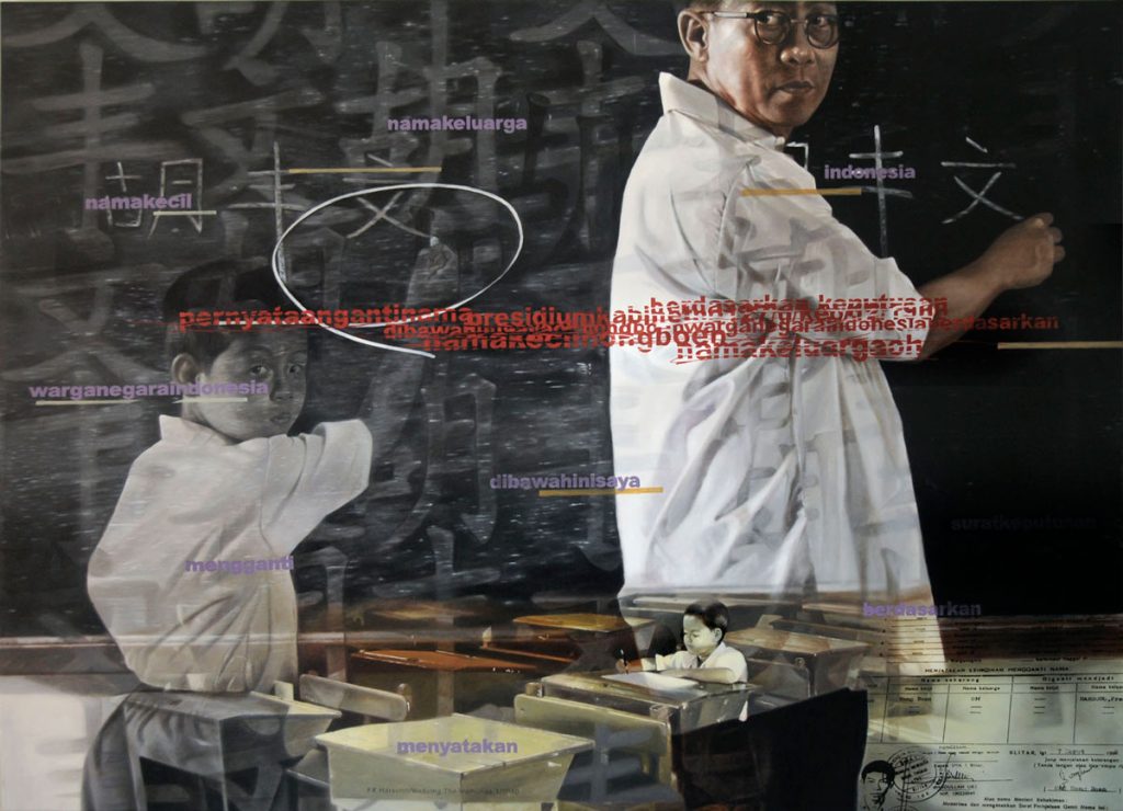Dalam pameran tunggalnya di Singapore Art Museum pada 2009, Harsono menampilkan instalasi berjudul Rewriting the Erased. Karya ini terdiri dari lembaran kertas kaligrafi dengan tinta hitam, bertuliskan empat huruf kanji yang membentuk nama lahirnya: “Wu Fung Wen” atau “Oh Hong Bun”. Namun ironi terletak pada fakta bahwa ia sendiri tidak lagi fasih membaca dan menulis aksara Mandarin.